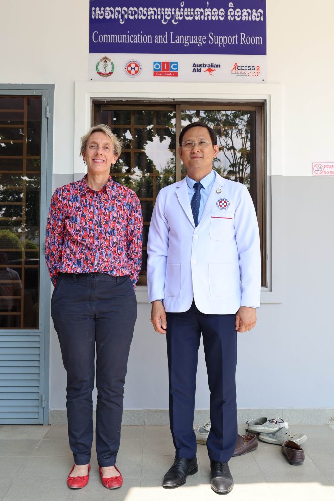 បន្ទប់ការប្រាស្រ័យទាក់ទ និងគាំទ្រភាសានេះ បង្កើតឡើងដោយផ្អែកលើកិច្ចសហការយ៉ាងរឹងមាំរបស់កម្មវិធី ACCESS 2 ជាមួយក្រសួងសុខាភិបាល ដែលបានចាប់ផ្តើមជាមួយនឹងការបង្កើតផ្នែកស្តារលទ្ធភាពពលកម្មដែលមានមូលដ្ឋាននៅមន្ទីរពេទ្យក្នុងខែតុលា ឆ្នាំ២០២៤។ វាឆ្លុះបញ្ចាំងពីការប្តេជ្ញាចិត្តរួមគ្នារបស់យើងក្នុងការពង្រឹងសេវាស្តារលទ្ធភាពពលកម្មនៅក្នុងប្រព័ន្ធសុខាភិបាលរបស់ប្រទេសកម្ពុជា។ សេវាស្តារលទ្ធភាពពលកម្មដំបូង និងមានគុណភាពត្រូវបានបង្ហាញឱ្យឃើញថាអាចកាត់បន្ថយការស្នាក់នៅមន្ទីរពេទ្យ ការពារឧបសគ្គនានា និងធ្វើឱ្យលទ្ធផលសុខភាពរយៈពេលវែងកាន់តែប្រសើរ។